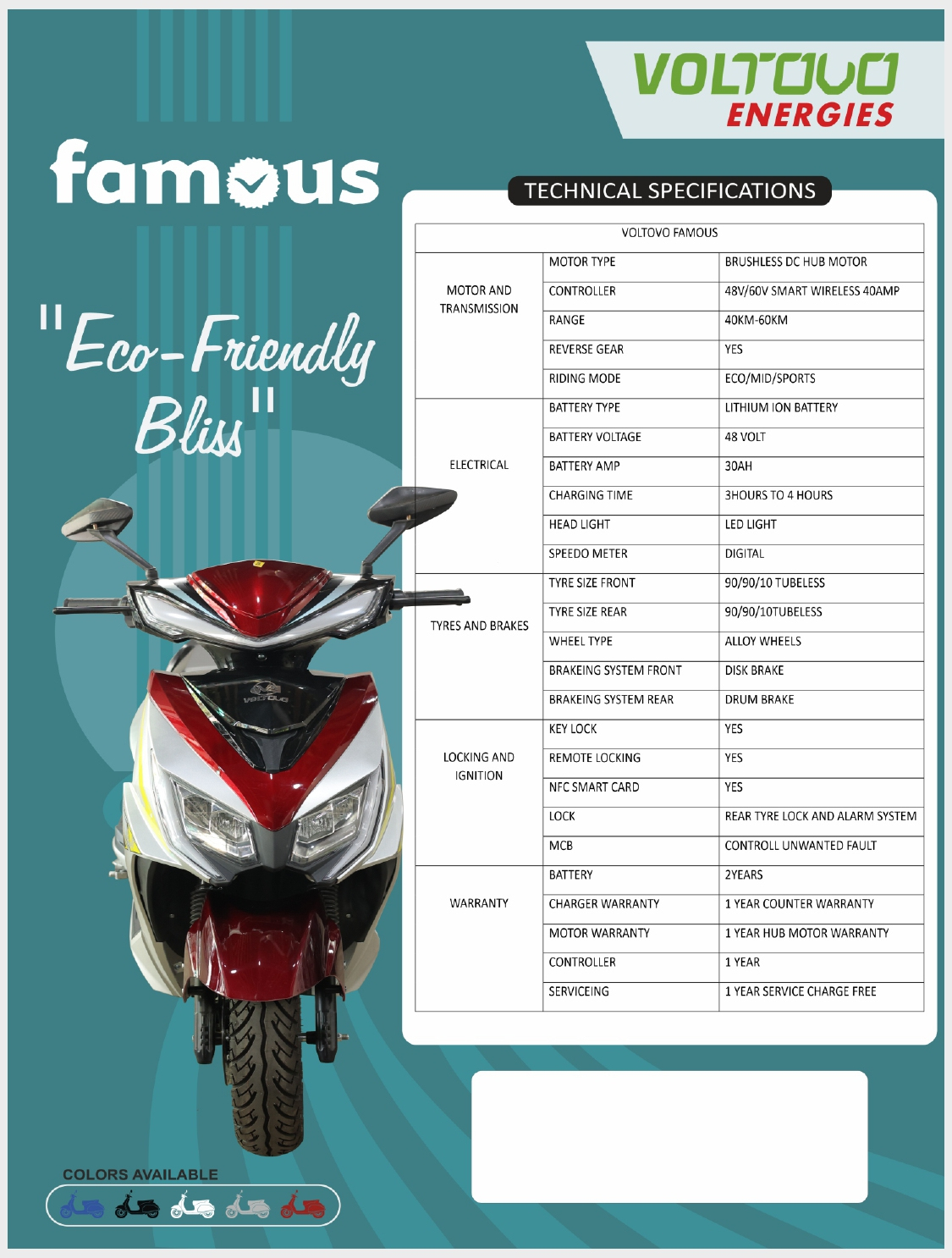 Ideal for short-distance urban rides, the Famous provides agility with a punch. It’s a compact, smart scooter perfect for students and daily commuters seeking affordability and performance.