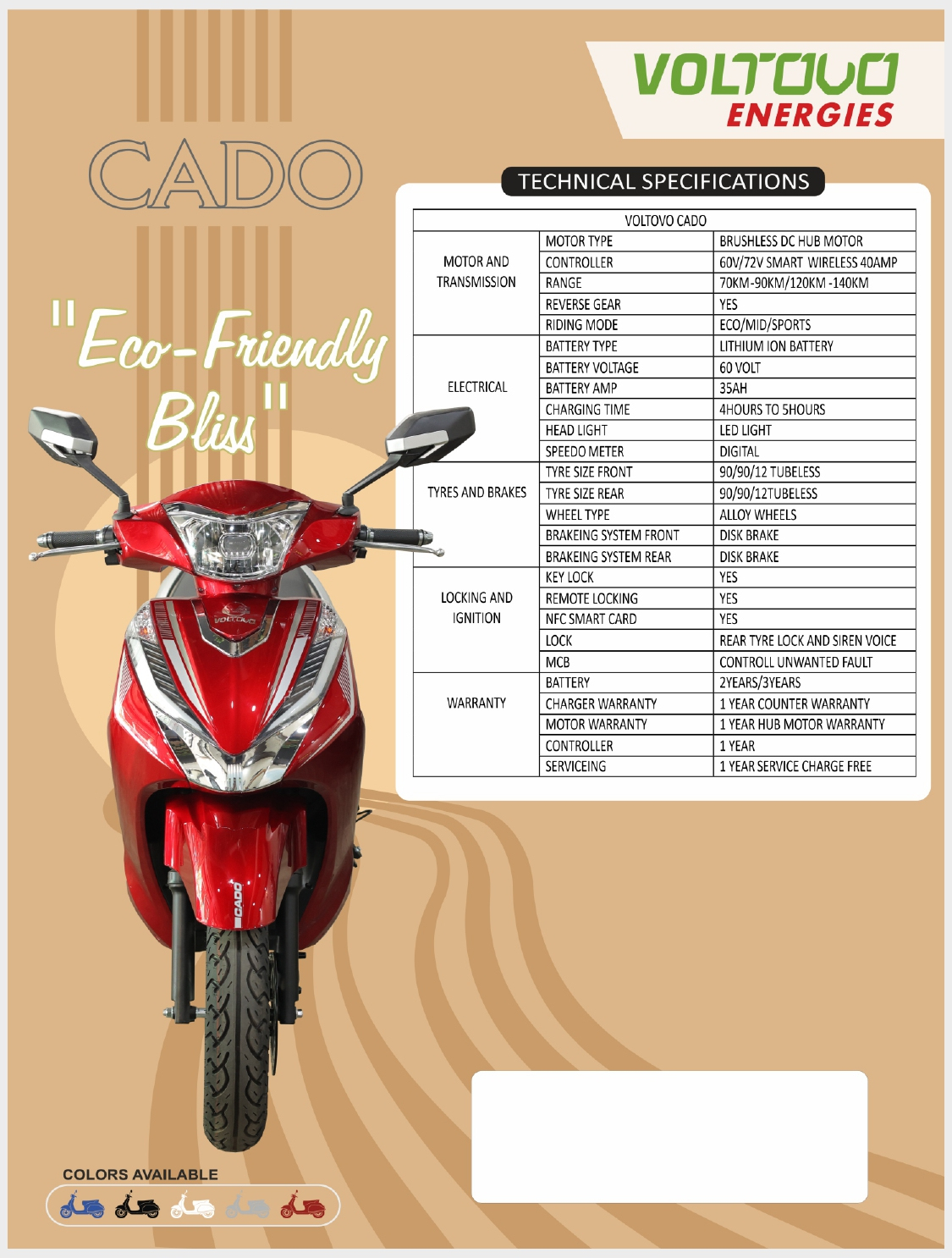 Cado stands out with aggressive design and powerful specs. Built for riders who seek strong road presence and advanced security, it ensures a comfortable and safe commute.