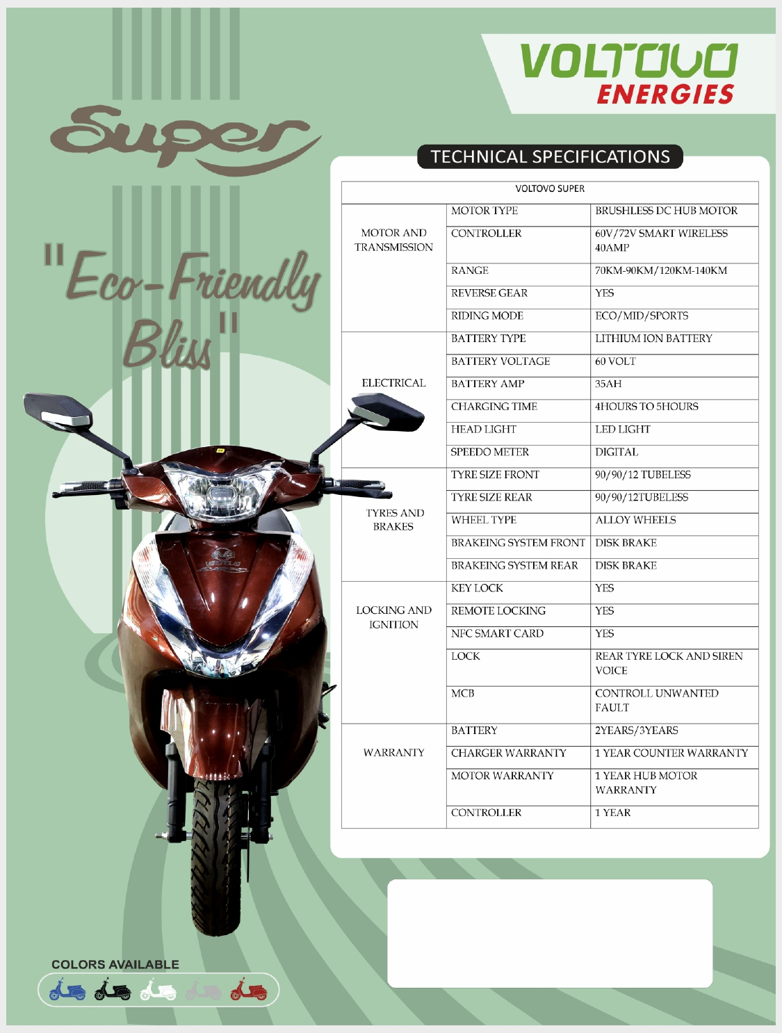 The Super offers a smooth and powerful performance with modern design. Featuring a robust battery, digital controls, and eco/sport riding modes, it's built for comfort and control.