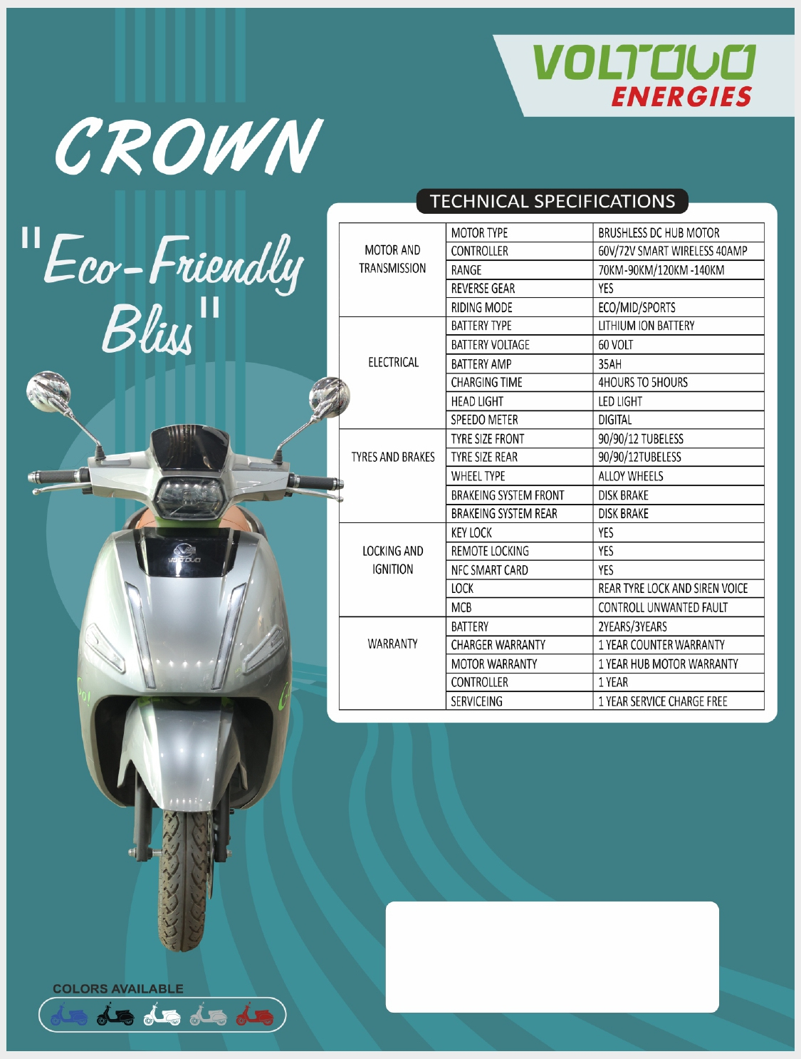 The Crown is a blend of power and sophistication, crafted for premium riders. With extended range, robust 35AH battery, and modern safety features like remote locking and NFC smart card, it ensures a kingly ride—every time.